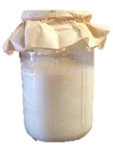 - Coloque os grãos de kefir e o leite no vasilhame não metálico (certifique-se de não encher mais de 3/4 do vasilhame).